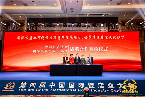 中國飯店協(xié)會(huì )與國際飯店餐館協(xié)會(huì )簽署“國際飯店業(yè)可持續發(fā)展翡翠酒店項目、世界傳統美食文化保護”戰略合作協(xié)議
